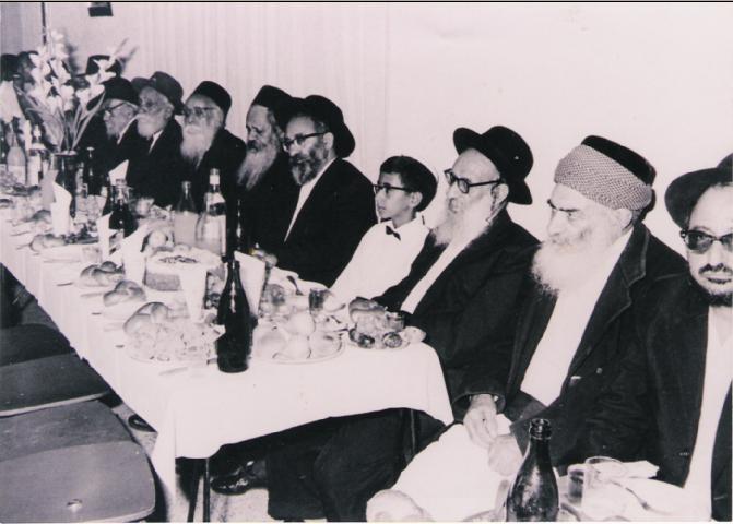 בתמונה: הרב יוסף קאפח במרכז התוועדות חכמים עם הצבור בסעודת מצווה [כנראה לרגל בר מצוה].