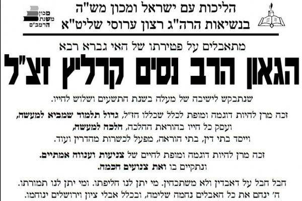 מתאבלים על פטירתו של הגאון הרב נסים קרליץ זצ"ל